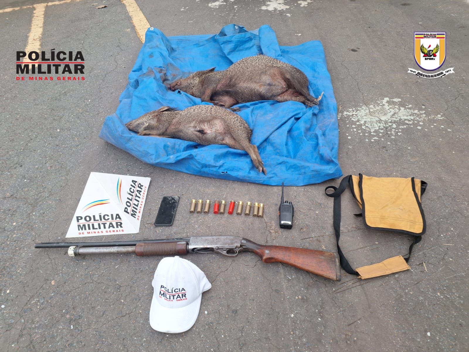 No entanto, as equipes conseguiram deter um indivíduo identificado como J. M. C., de 75 anos, portando uma arma longa Cal. 12 carregada e municiada. Em uma vistoria minuciosa na região, foi descoberto um acampamento clandestino contendo cachorros de caça da raça “americanos”, além de um veículo Fiat/Uno abandonado, dois animais abatidos, um rádio de comunicações e diversos equipamentos característicos de caça predatória.