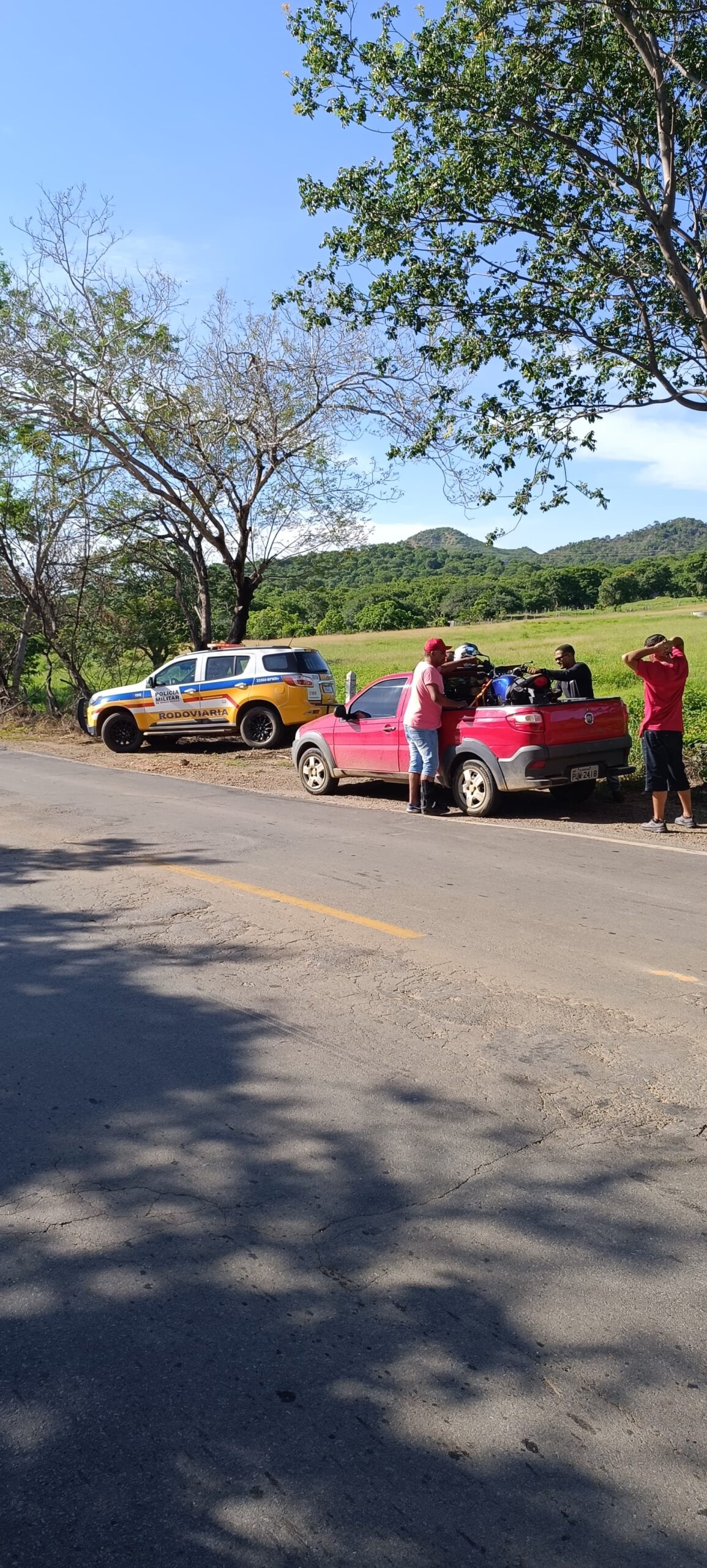 Durante a operação Rota Segura na Rodovia MGC 122, no KM 132, na comunidade de Bom Jesus, Porteirinha/MG, policiais militares rodoviários abordaram um condutor de motocicleta com placa SHD2H86 que estava deslocando sem identificação da placa, sem retrovisor e em alta velocidade, na contramão de direção. O condutor acelerou e evadiu em alta velocidade em direção à cidade de Porteirinha/MG.