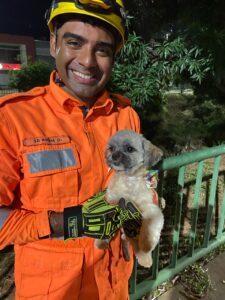 Corpo de bombeiros resgata filhote de cachorro em córrego de Montes Claros
