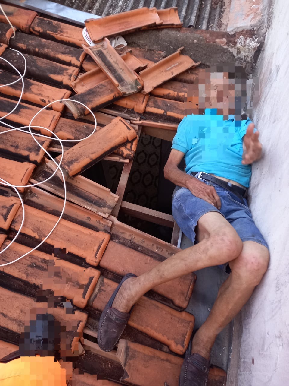 O senhor, de 85 anos, estava caído no telhado após tentar fazer reparos para corrigir goteiras. Ele já recebia atendimento do Serviço de Atendimento Móvel de Urgência (SAMU), que solicitou apoio dos bombeiros para descer o idoso em segurança.