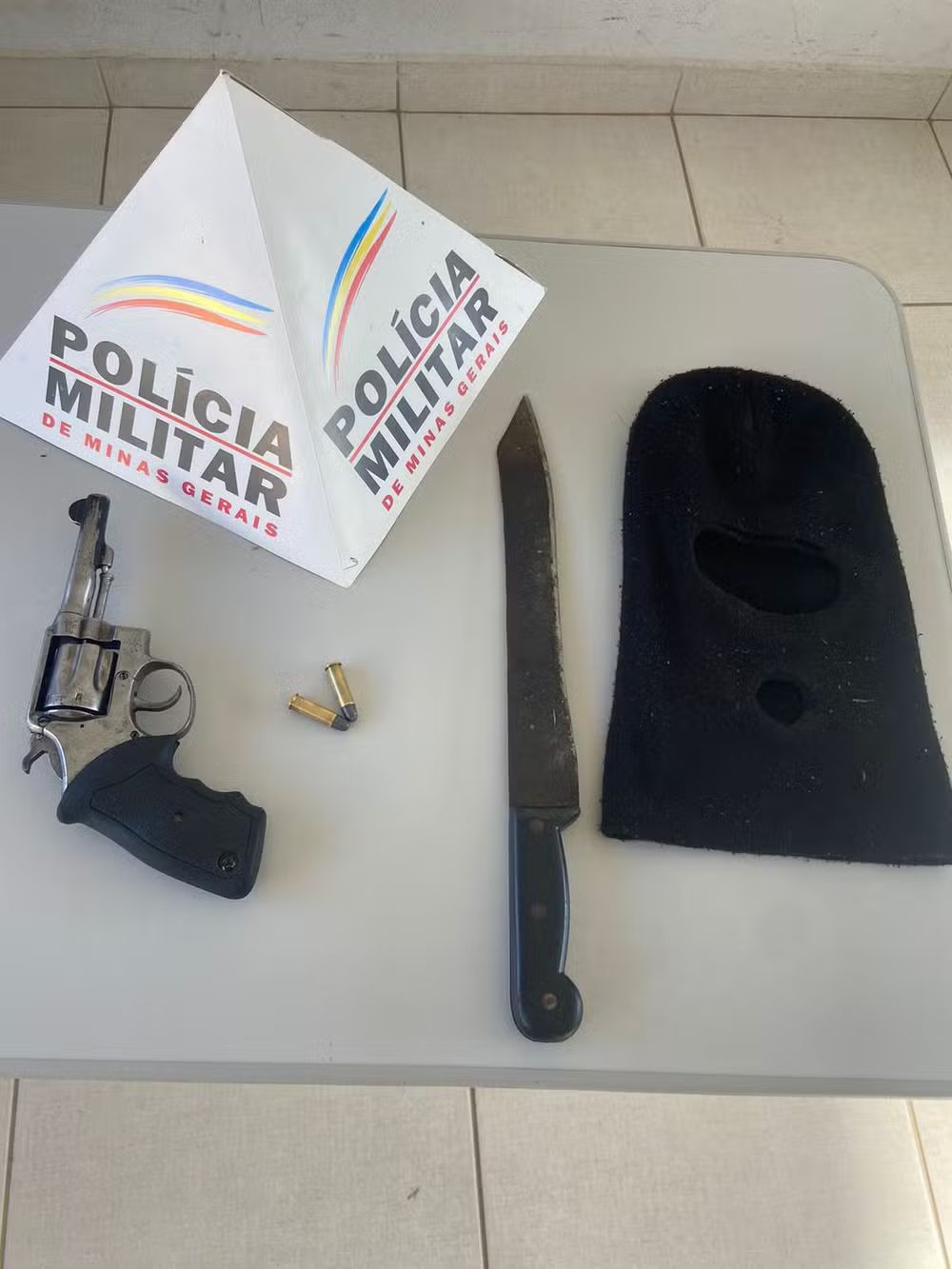 Com um dos suspeitos, foi encontrada uma sacola contendo um revólver e uma touca ninja, enquanto com o outro foi apreendida uma faca. Questionados, os suspeitos indicaram onde haviam escondido a moto roubada. Ambos foram detidos e encaminhados para a delegacia da Polícia Civil.