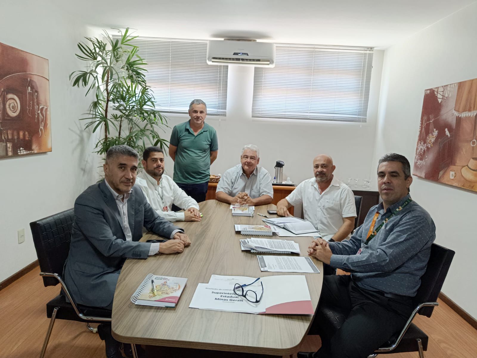 Participaram da reunião o Diretor Financeiro, Flávio Oliveira; Evacir de Oliveira Júnior, gerente estadual do agro e da agricultura familiar; e o Diego Miranda, Gerente-Geral do Escritório da Superintendência para MG.