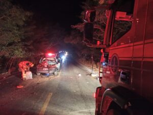 Carro bate em caminhão de carvão e motorista sofre traumatismo craniano, em Nova Porteirinha