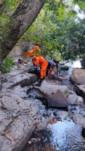 Homem cai de cachoeira, bate a cabeça e sofre traumatismo craniano, em Três Marias