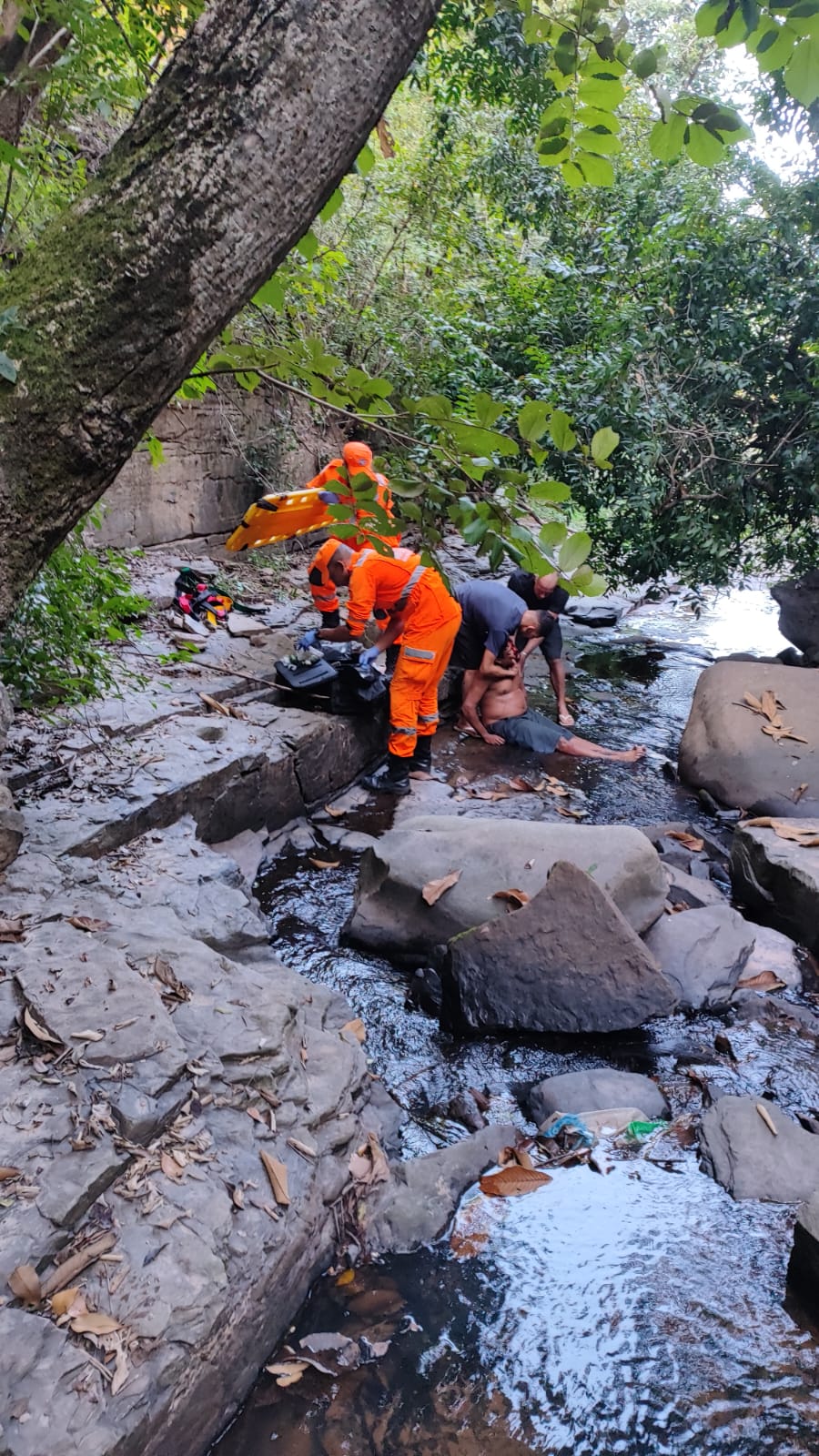 A Assessoria de Imprensa do Corpo de Bombeiros informou que, os militares foram acionados para realizar o salvamento da vítima, que estava em uma área de difícil acesso. O homem caiu de uma altura de seis metros e bateu a cabeça em uma pedra. Foi verificado que ele encontrava-se com traumatismo crânio encefálico, com rebaixamento de consciência.