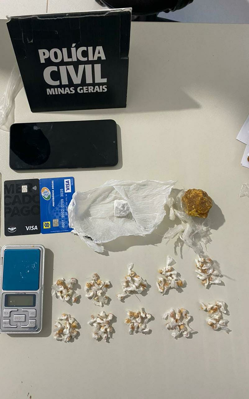 Em ação de combate ao tráfico de drogas na cidade de Ubaí, região Norte do estado, a Polícia Civil de Minas Gerais prendeu em flagrante um homem, de 21 anos, na manhã desta quarta-feira (8). Durante cumprimento de mandado de busca e apreensão na casa do suspeito, foram localizados 10 gramas de cocaína, 43 gramas e mais 102 pedras de Crack, balança de precisão e celular.