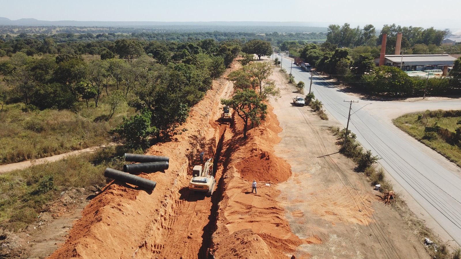 A prefeitura começou a escavação do canal onde será instalado os 1,8 quilômetros de tubos PEAD de 1 metro de diâmetro, que terá a finalidade de coletar e conduzir as águas pluviais, da lagoa para o rio São Francisco.