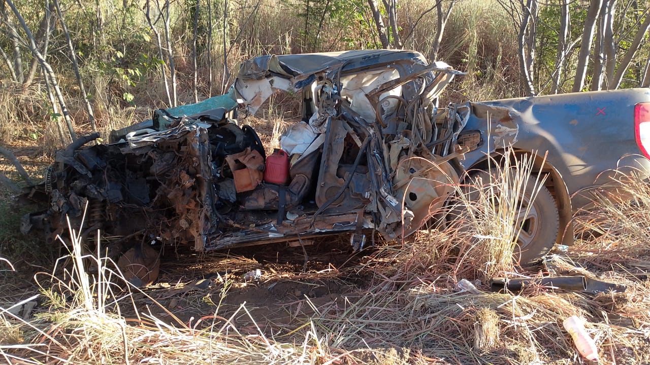 A caminhonete ficou destruída. Foto: Corpo de Bombeiros / Divulgação
