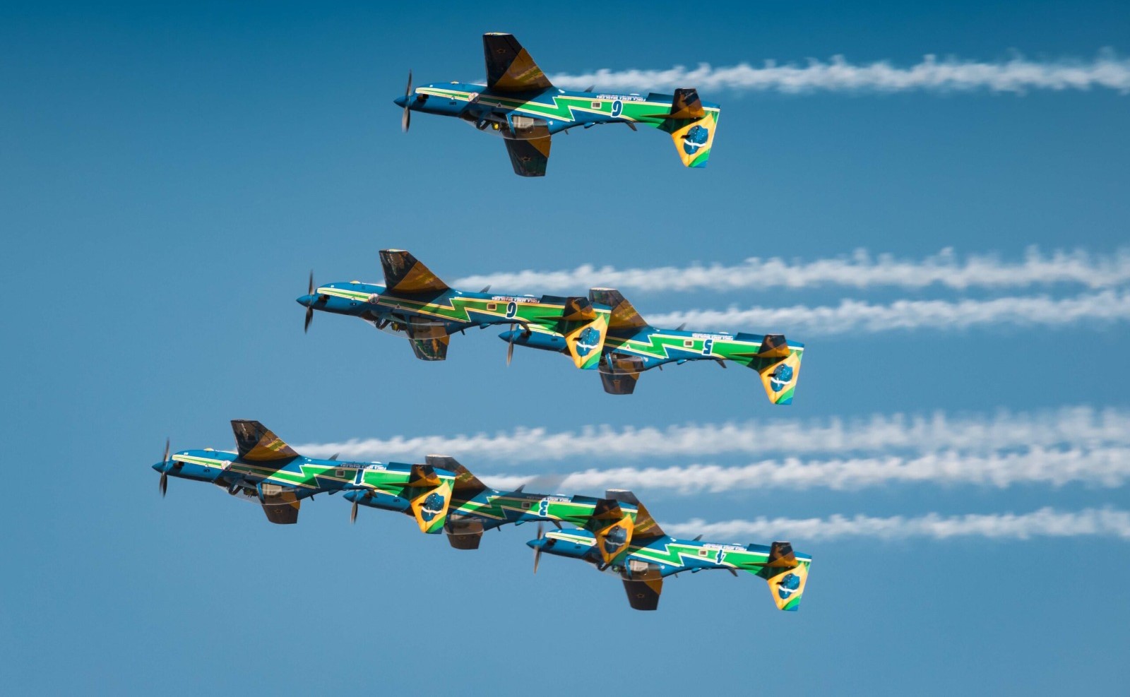 O A-29 Super Tucano, fabricado pela Embraer, é uma aeronave monomotor turboélice com capacidade para um ou dois tripulantes, alcançando uma velocidade máxima de 590 km/h e uma autonomia de voo de até 3 horas e 20 minutos. Desde 2015, a Esquadrilha utiliza essa aeronave, destacando-se pela sua modernidade e pela pintura vibrante nas cores da bandeira do Brasil.