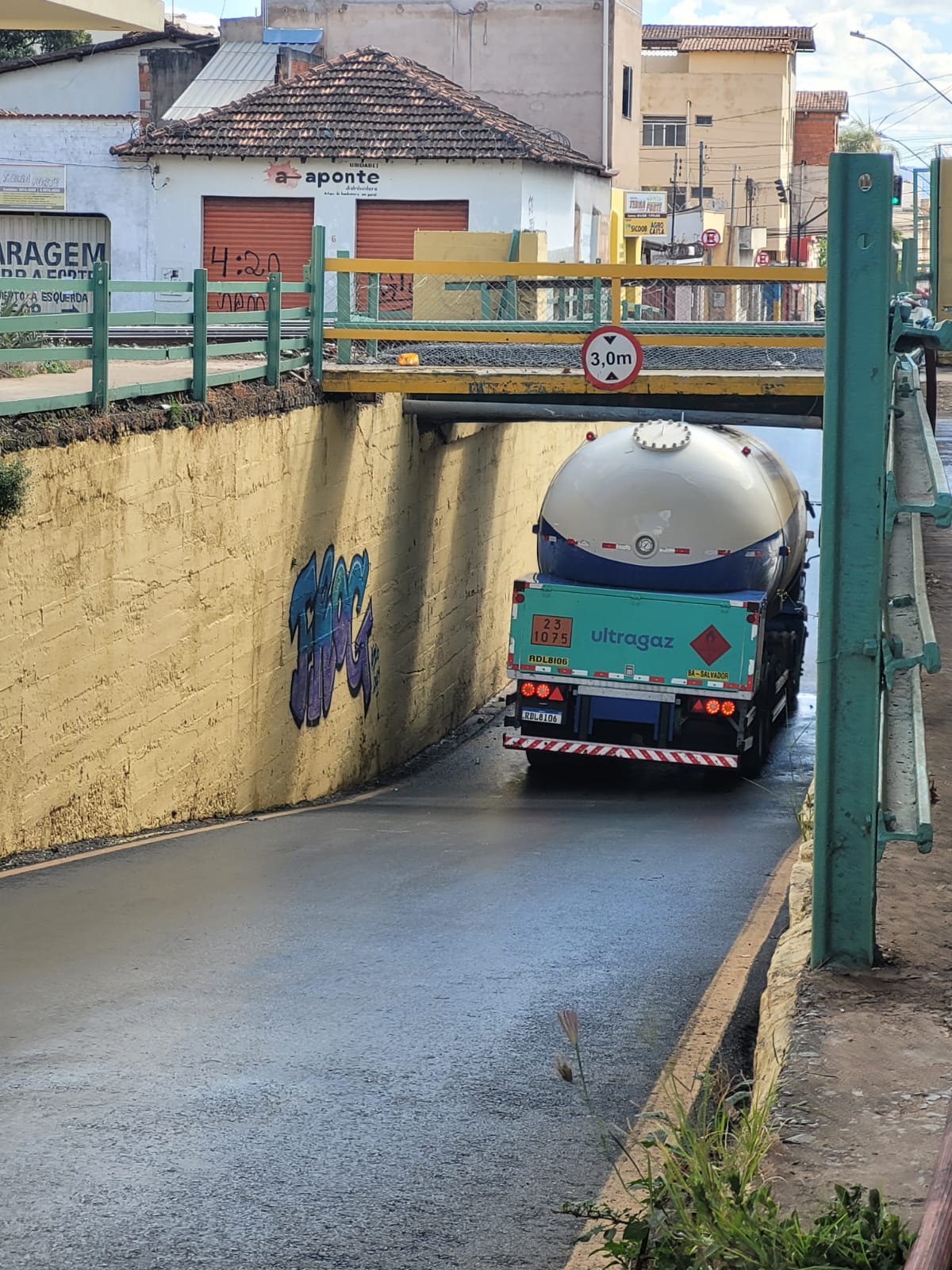 Na manhã desta terça-feira (16), um caminhão tanque ficou preso debaixo de um viaduto rua Juca Prates, no centro de Montes Claros. Devido a altura do caminhão, o tanque do veículo acabou atingindo a estrutura do viaduto onde passa uma ferrovia, ouve vazamento de Gás Liquefeito Petróleo (GLP).