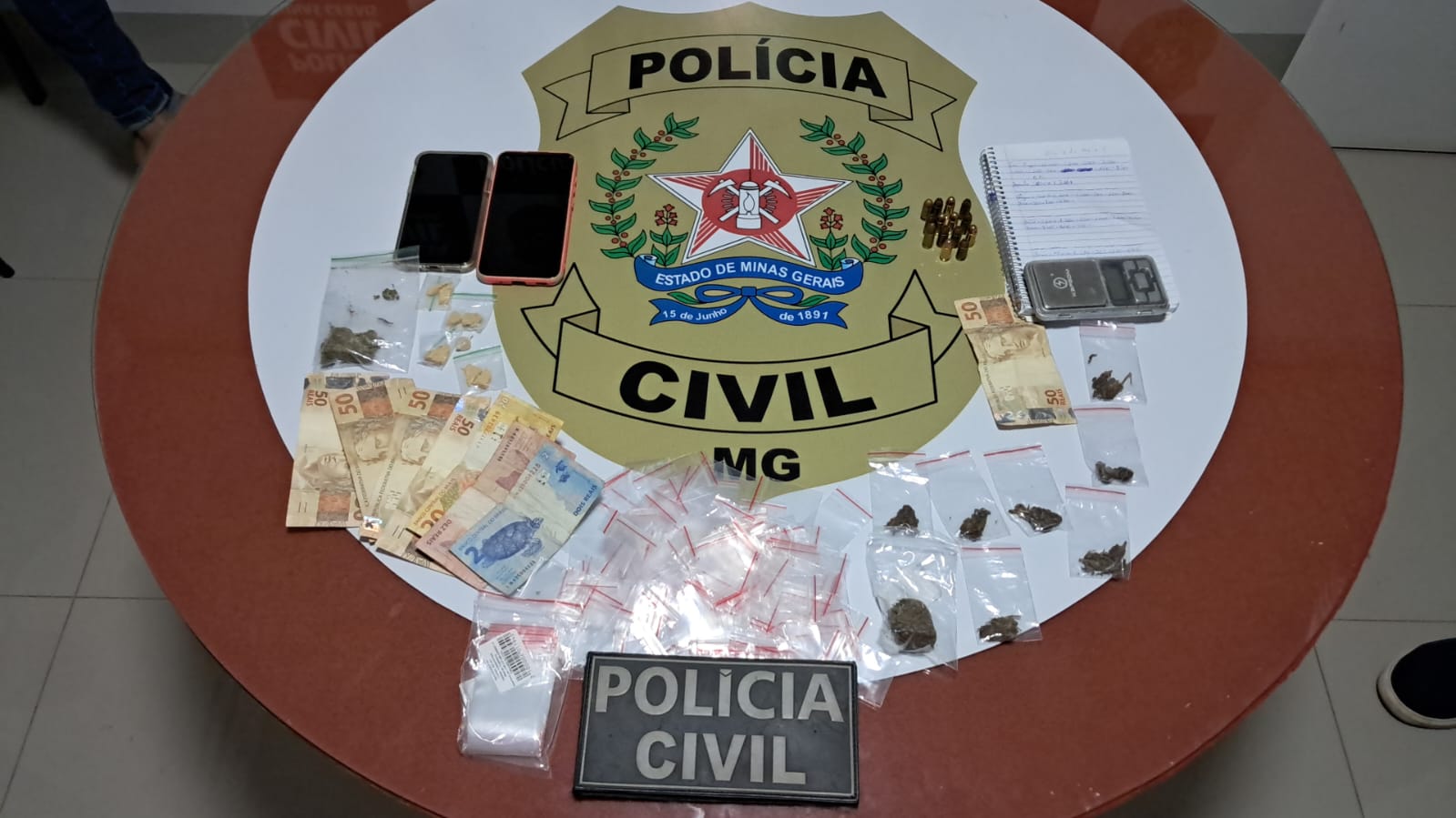 Na casa do suspeito, um homem foi abordado na porta do imóvel e com ele, apreendidos maconha, crack e dinheiro. Dentro da residência, os policiais civis encontraram o restante do material.