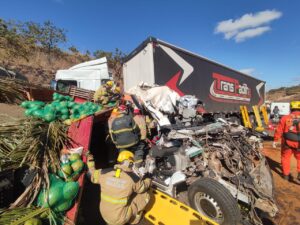 Francisco Sá: grave acidente na BR-251 entre duas carretas e uma van deixa cinco mortos