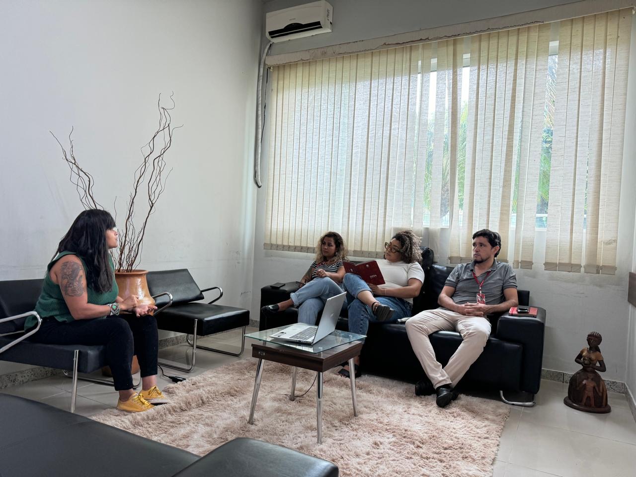 Além da coordenadora do departamento de Assistência Social da Amams, Laila Souza, também estiveram presentes na reunião Amanda Freitas, educadora social com formação em Assistência social, Aldinei Leão, assessor jurídico, e Amanda Cardoso, agente de Ação Social.