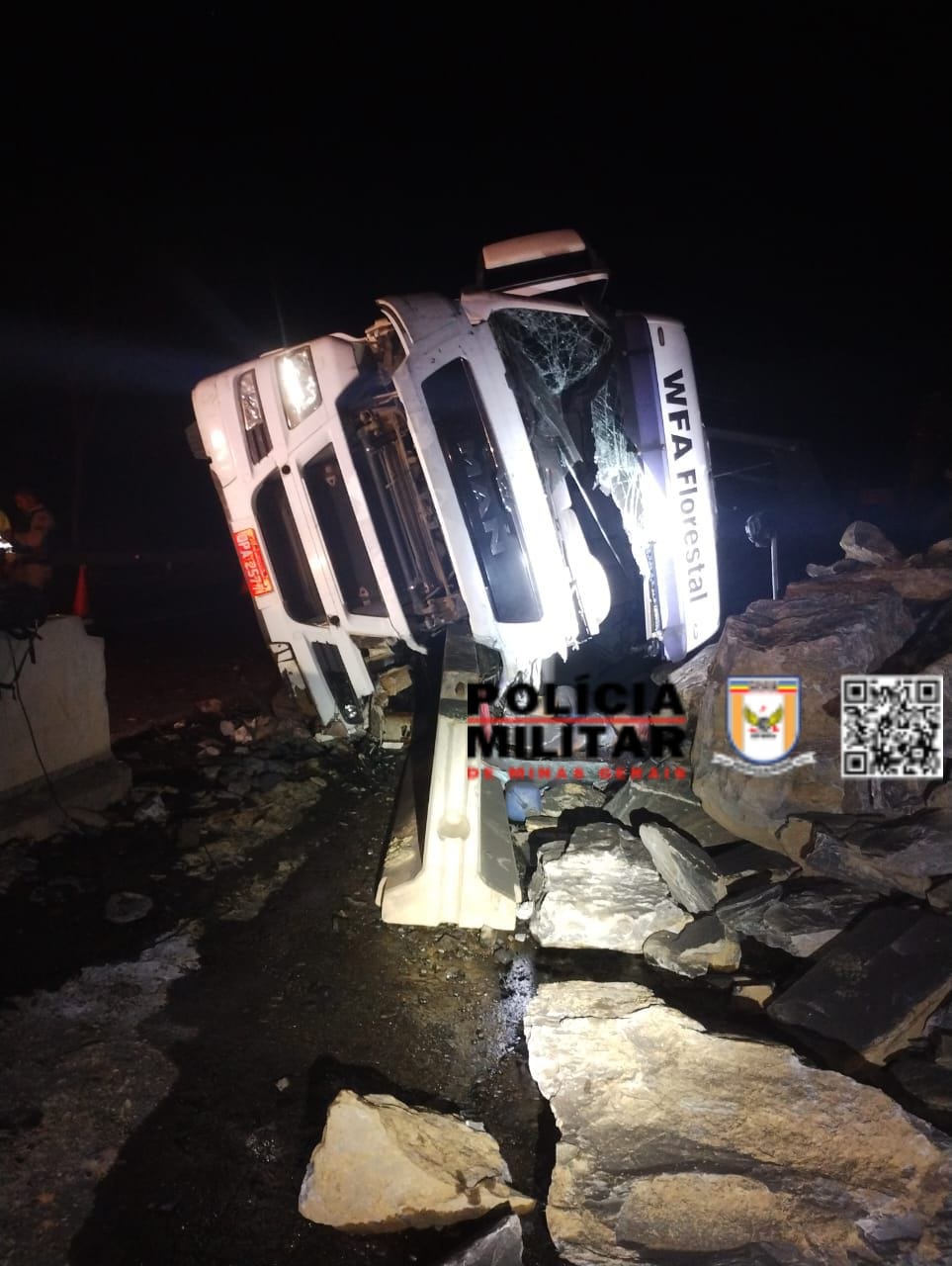 Segundo o Corpo de Bombeiros, o motorista da carreta branca, com placa da cidade de Montes Claros-MG, que seguia no sentido Montes Claros-Bocaiuva, o Sr. G. S., de 62 anos, perdeu o controle do veículo por motivos ainda desconhecidos ao realizar uma curva, resultando no tombamento da carreta sobre as divisórias de concreto e montes de rochas.