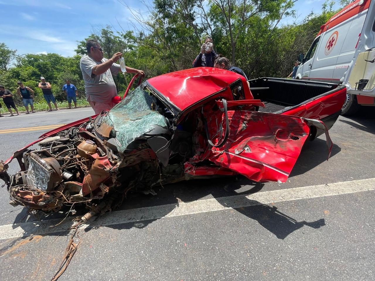 Ainda de acordo com os Bombeiros, o acidente deixou duas vítimas. O condutor da carreta, identificado como C.B.S., de 29 anos, foi encontrado fora do veículo, consciente e sem sinais aparentes de traumas. Já o motorista da pick-up, G.L.F., de 22 anos, ficou preso entre as ferragens do veículo.