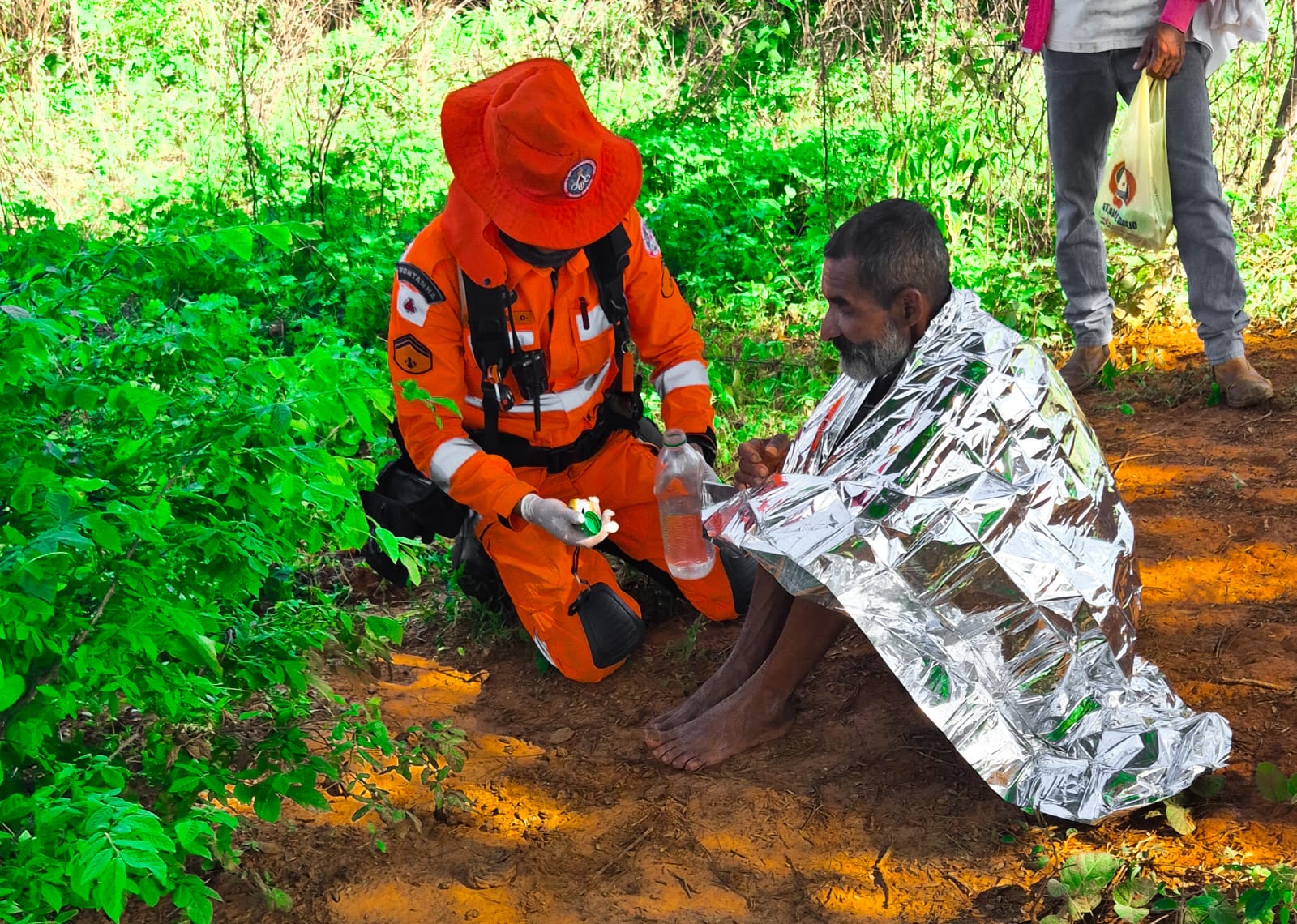 O idoso foi encontrado em estado debilitado, após enfrentar condições adversas durante seis dias - Foto: Corpo de Bombeiros | Divulgação