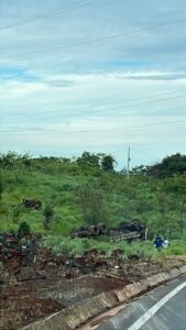 Caminhão carregado com pequi capota na BR-365 e motorista morre no acidente