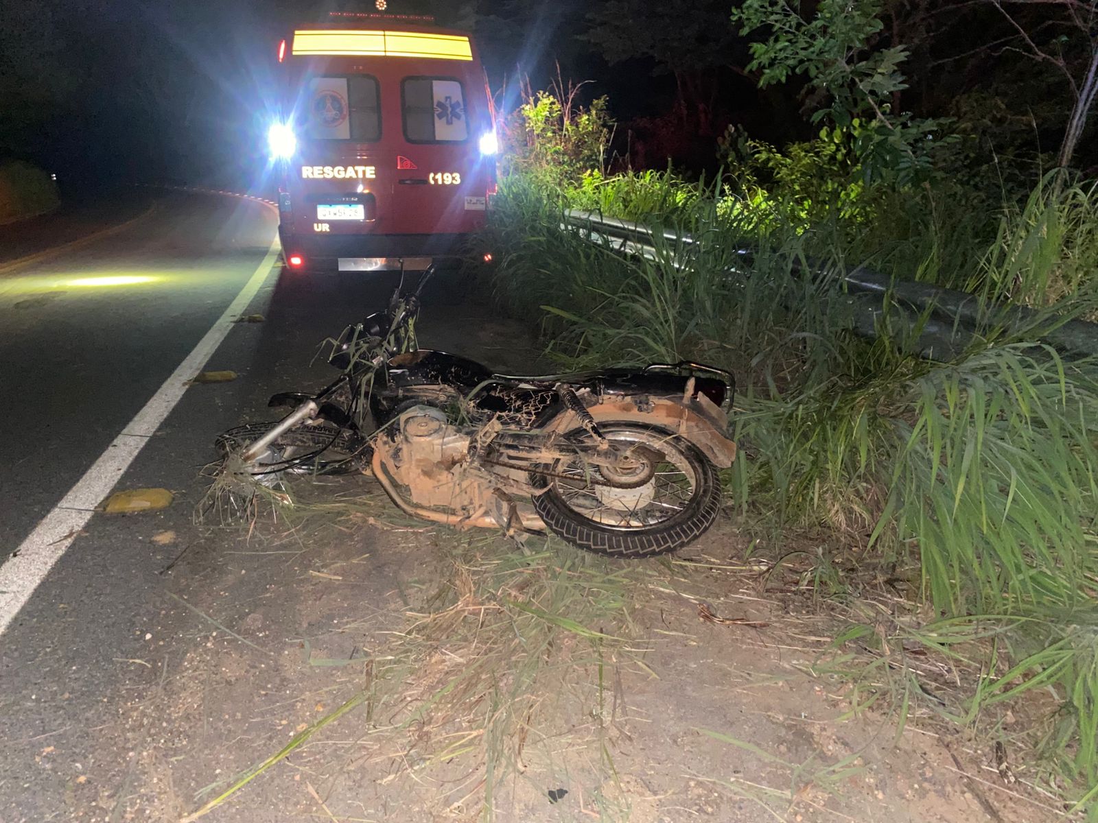 A motocicleta colidiu contra uma estrutura de proteção de curva - Foto: Corpo de Bombeiros | Divulgação