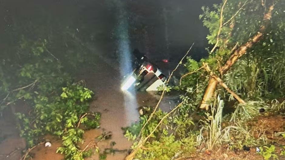 De acordo com a Polícia Militar, o motorista do veículo, um homem de 39 anos, relatou que seguia para a cidade de Urucuia quando o pneu traseiro direito da caminhonete estourou. Ele perdeu o controle da direção, saiu da pista, colidiu com uma árvore e caiu na vala alagada.