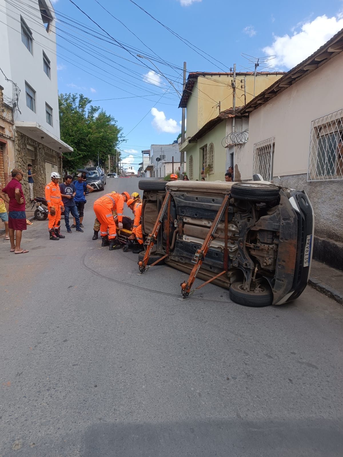 Segundo o Corpo de Bombeiros, no local, os militares encontraram um carro de passeio branco tombado sobre o lado do motorista. O automóvel era conduzido pela vítima identificada pelas iniciais PSRG, que relatou ter perdido o controle do veículo ao atravessar um desnível férreo enquanto se deslocava do bairro Morrinhos em direção ao Centro da cidade. Antes do tombamento, o carro colidiu com outro veículo que estava estacionado.