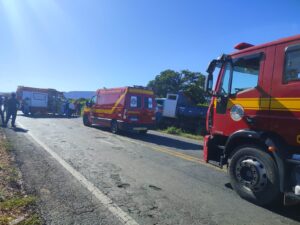 Colisão entre caminhão e veículo de passeio deixa cinco feridos na MGC-122