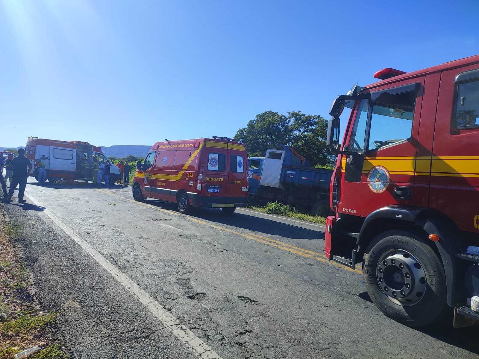 No local, foi identificado o envolvimento de um caminhão prestador de serviços para o Departamento de Estradas de Rodagem (DER) e um veículo de passeio. O caminhão caçamba, que seguia em direção a Janaúba, transportava sete pessoas, todas do sexo masculino. O veículo de passeio, por sua vez, era ocupado apenas pelo motorista, que se deslocava para Porteirinha.
