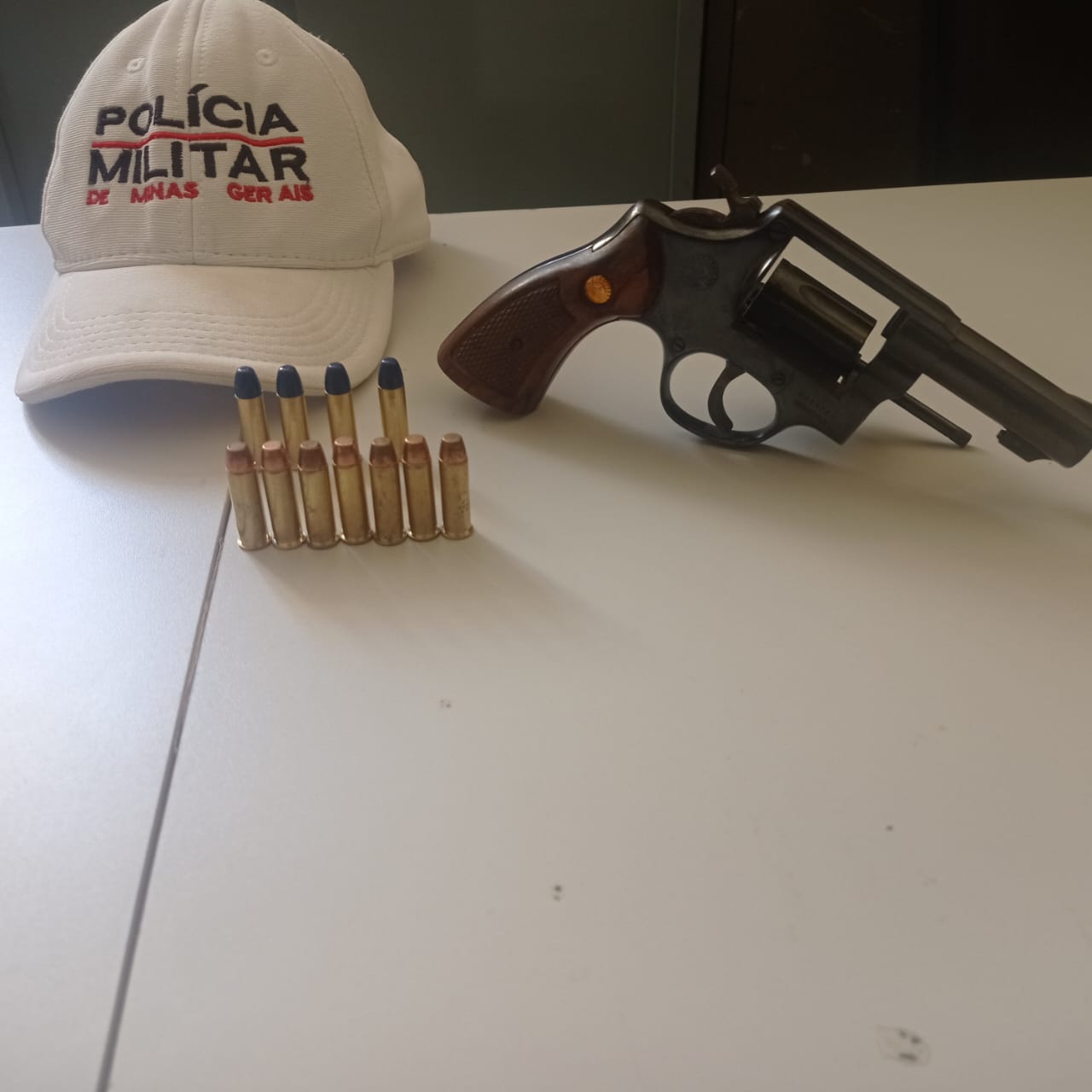 Diante da atitude suspeita, os agentes realizaram uma entrevista com o motorista, que negou a presença de qualquer arma de fogo no interior do veículo. Contudo, ao procederem com a busca no automóvel, os policiais encontraram um revólver calibre .38 municiado, carregado e pronto para uso, além de quatro munições de treino intactas.