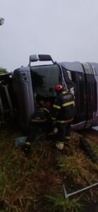 Carreta carregada com livros didáticos tomba no Anel Viário Leste de Montes Claros