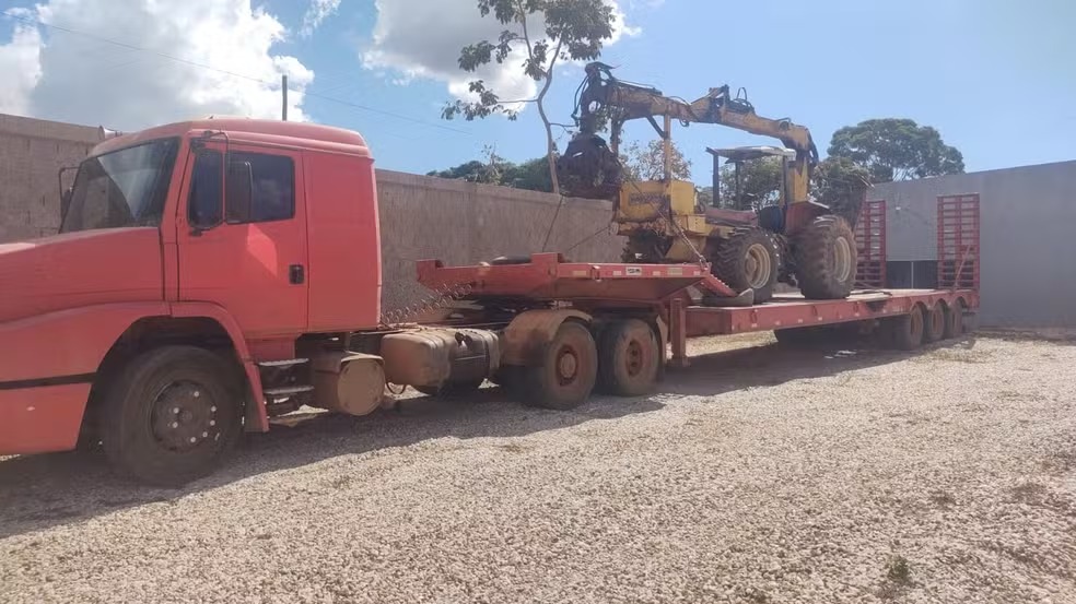Durante as diligências, os militares receberam informações de que o trator estava sendo transportado por uma carreta. O veículo de transporte foi abordado enquanto estava parado devido a obras na rodovia BR-135.