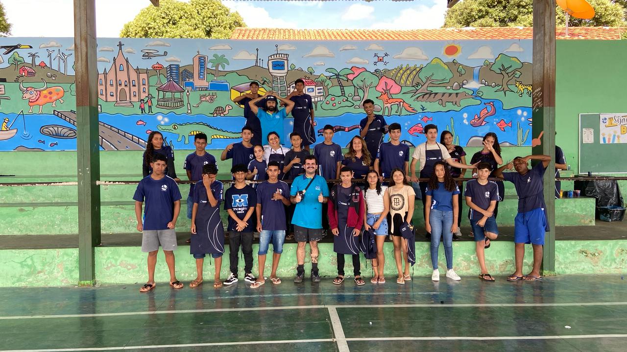A atividade consistiu na pintura coletiva do muro da escola, envolvendo estudantes do 9º ano do ensino fundamental. Com muita criatividade e imaginação, os jovens desenvolveram murais abordando temas como o tratamento da água, o esgotamento sanitário e a preservação ambiental.