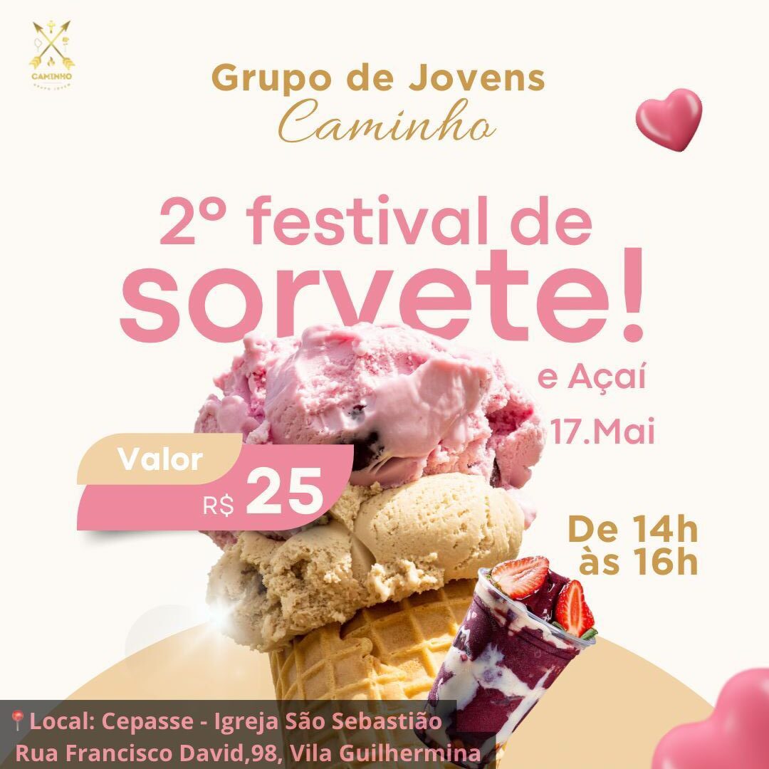 O Grupo de Jovens Caminho, da Paróquia São Sebastião, promove no próximo dia 17 de maio o 2º Festival de Sorvete, um evento voltado para toda a comunidade, com foco em lazer, integração e solidariedade.