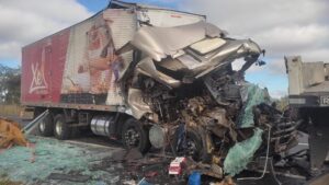 Caminhão fica destruído após colisão na BR-135 em Bocaiuva; motorista ficou ferido