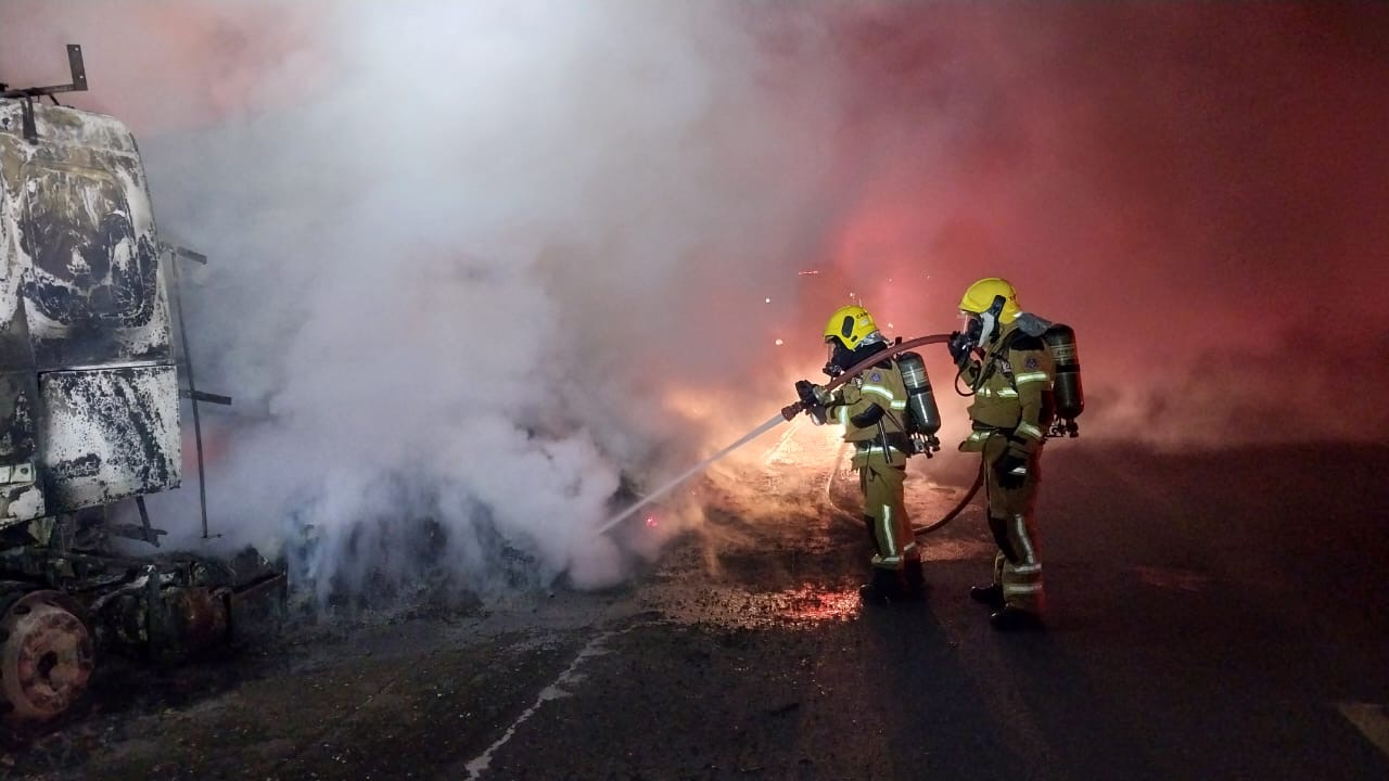 O Corpo de Bombeiros foi acionado por volta das 19h, mobilizando equipes do 8° Pelotão de Salinas e do 4° Pelotão de Itaobim. Segundo o motorista, o fogo começou no cavalo mecânico. Ele percebeu o princípio de incêndio a tempo de encostar o veículo no acostamento da rodovia, mas as chamas se alastraram rapidamente.
