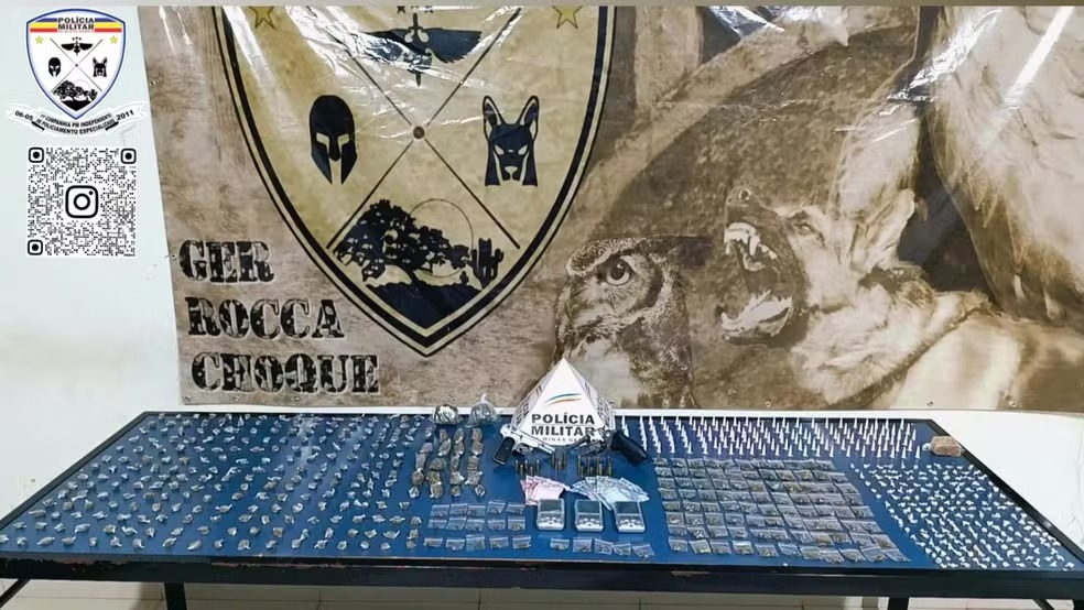 Na mochila que carregava, os militares encontraram duas armas de fogo (uma pistola e um revólver), diversas munições de calibres variados, além de uma expressiva quantidade de drogas: mais de 300 buchas e tabletes de maconha, 184 pedras de crack, 135 pinos de cocaína e dinheiro em espécie.