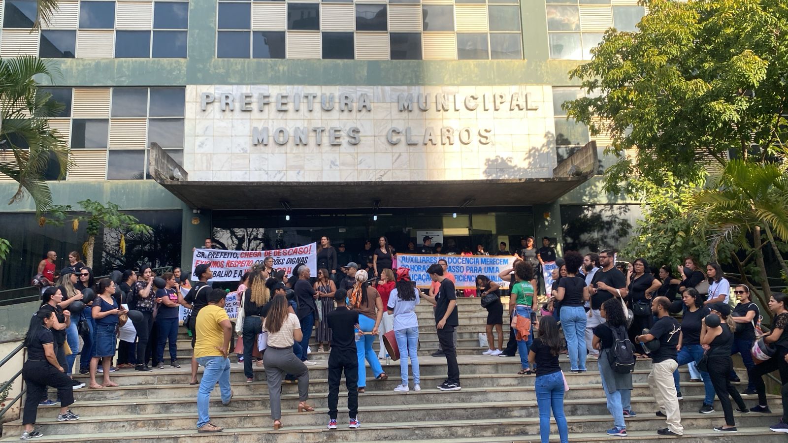 Na tarde desta segunda-feira (28), auxiliares de docência promoveram uma manifestação em frente à Prefeitura de Montes Claros, no Norte de Minas Gerais, reivindicando a redução da jornada de trabalho para 30 horas semanais. Atualmente, a categoria atua com uma carga horária de 40 horas, o que, segundo os manifestantes, tem gerado diversos prejuízos físicos, emocionais e profissionais.