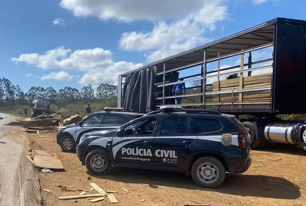 De acordo com a PCMG, após o acidente envolvendo a carreta, parte da carga se espalhou às margens da rodovia. Aproveitando-se da situação, os suspeitos começaram a furtar os produtos. Dois deles foram flagrados no momento em que subtraíam os materiais e tentaram fugir, mas foram contidos pelos policiais.