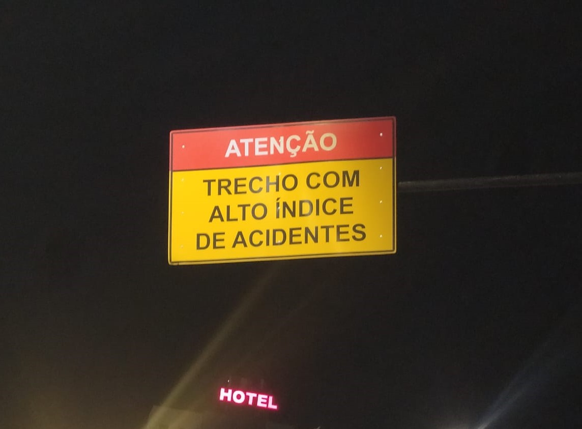 Viu a foto de capa da coluna, né? “TRECHO COM ALTO ÍNDICE DE ACIDENTES” — essa placa está justamente em uma avenida fundamental da região onde vivo. Já cansei de passar por ela. Acompanhei seu desenvolvimento desde quando ainda não havia sido duplicada — eu já estava aqui. Lembra que falei que vi gente nascer e morrer por aqui? Pois é, vi pessoas morrerem nessa avenida. Os acidentes são constantes.