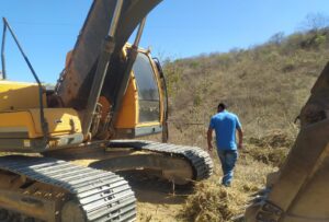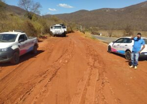 “Essa aqui é a estrada que dá acesso à Comunidade de Bananal. Está sendo cascalhada, patrolada e está sendo feito o alargamento da estrada”, explicou.