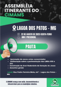 Entre as pautas em destaque, está a análise de adesões de novos municípios ao consórcio e a discussão da Resolução nº 003/2025, que trata da pavimentação de importantes trechos rodoviários: LMG-656 (de Lagoa dos Patos à LMG-674), LMG-651 (de Coração de Jesus a Ibiaí) e a construção do Anel Rodoviário de Coração de Jesus.