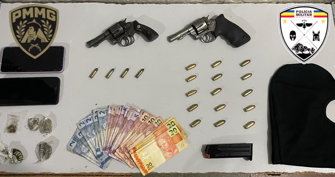 Durante a abordagem, um dos homens foi flagrado com quatro munições calibre .40 e um celular. Com a mulher, os militares apreenderam sete tabletes de maconha e R$ 292 em dinheiro. Ela ainda tentou subornar a equipe, oferecendo a localização de uma arma de fogo em troca de sua liberação. No endereço indicado, a PM apreendeu um revólver calibre .32.