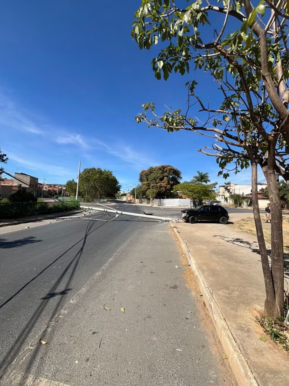 Com o impacto, o poste atingido tombou sobre outro, que também acabou caindo.