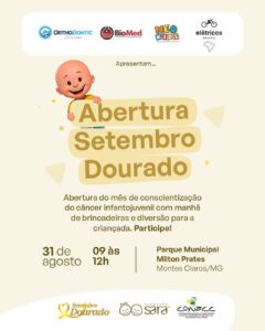 Assim como o Outubro é Rosa e o Novembro é Azul, o Setembro é Dourado, mês dedicado à conscientização sobre o câncer infantojuvenil. Em Montes Claros, a abertura da mobilização acontece neste domingo, 31 de agosto, das 9h às 12h, no Parque Municipal Milton Prates.