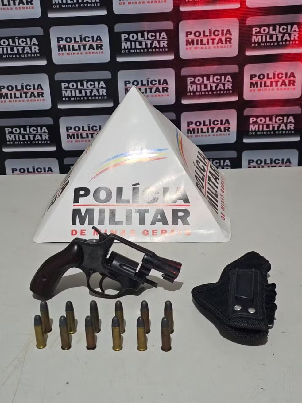 Quando abordado, o suspeito admitiu ter discutido com o vizinho, mas negou estar armado. Na residência dele nada foi localizado, porém, durante a vistoria em seu caminhão, estacionado na rua, os militares encontraram o revólver carregado na cabine.