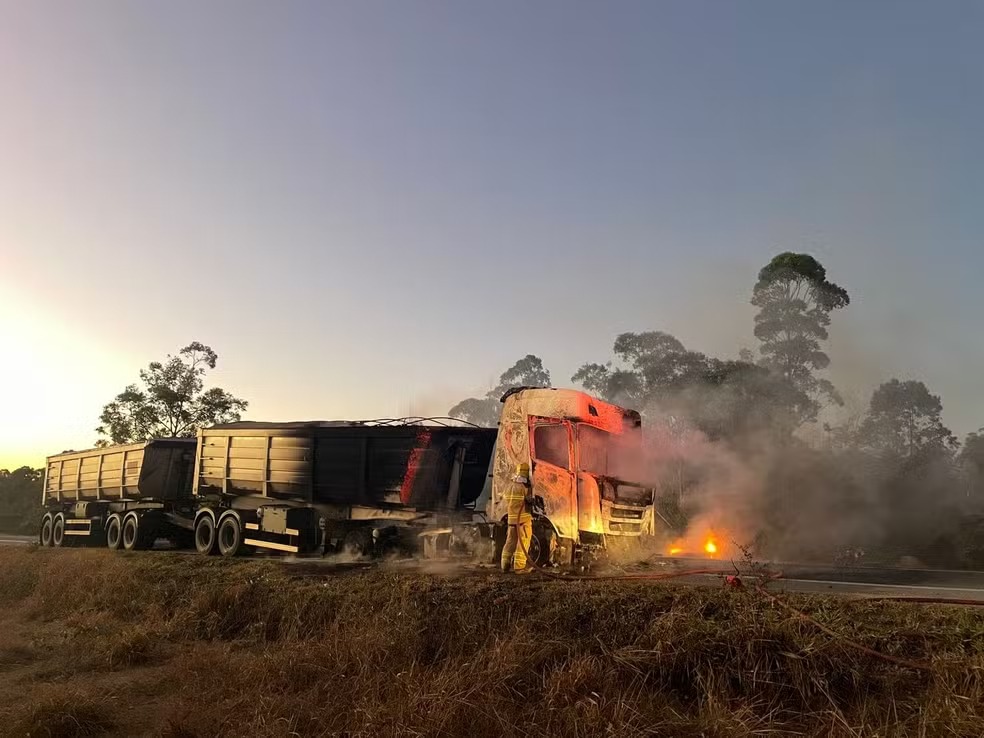 Segundo a Polícia Rodoviária Federal (PRF), o condutor não soube explicar como o incêndio teve início. Ele contou que percebeu as chamas durante o trajeto, estacionou a carreta e saiu rapidamente junto com o irmão. Nenhum pertence do veículo pôde ser salvo.
