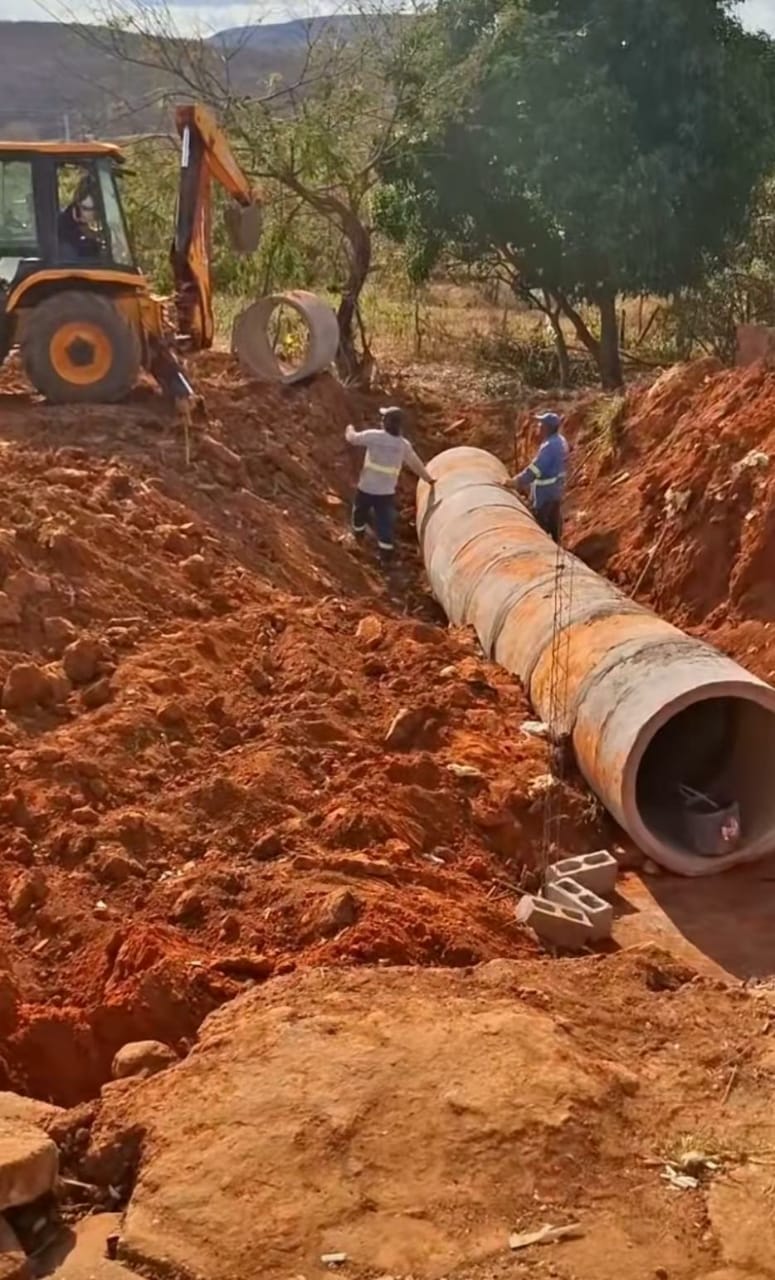 O trabalho consiste no manilhamento de água, uma ação de drenagem que busca solucionar problemas recorrentes enfrentados pelos moradores, especialmente durante períodos de chuvas.