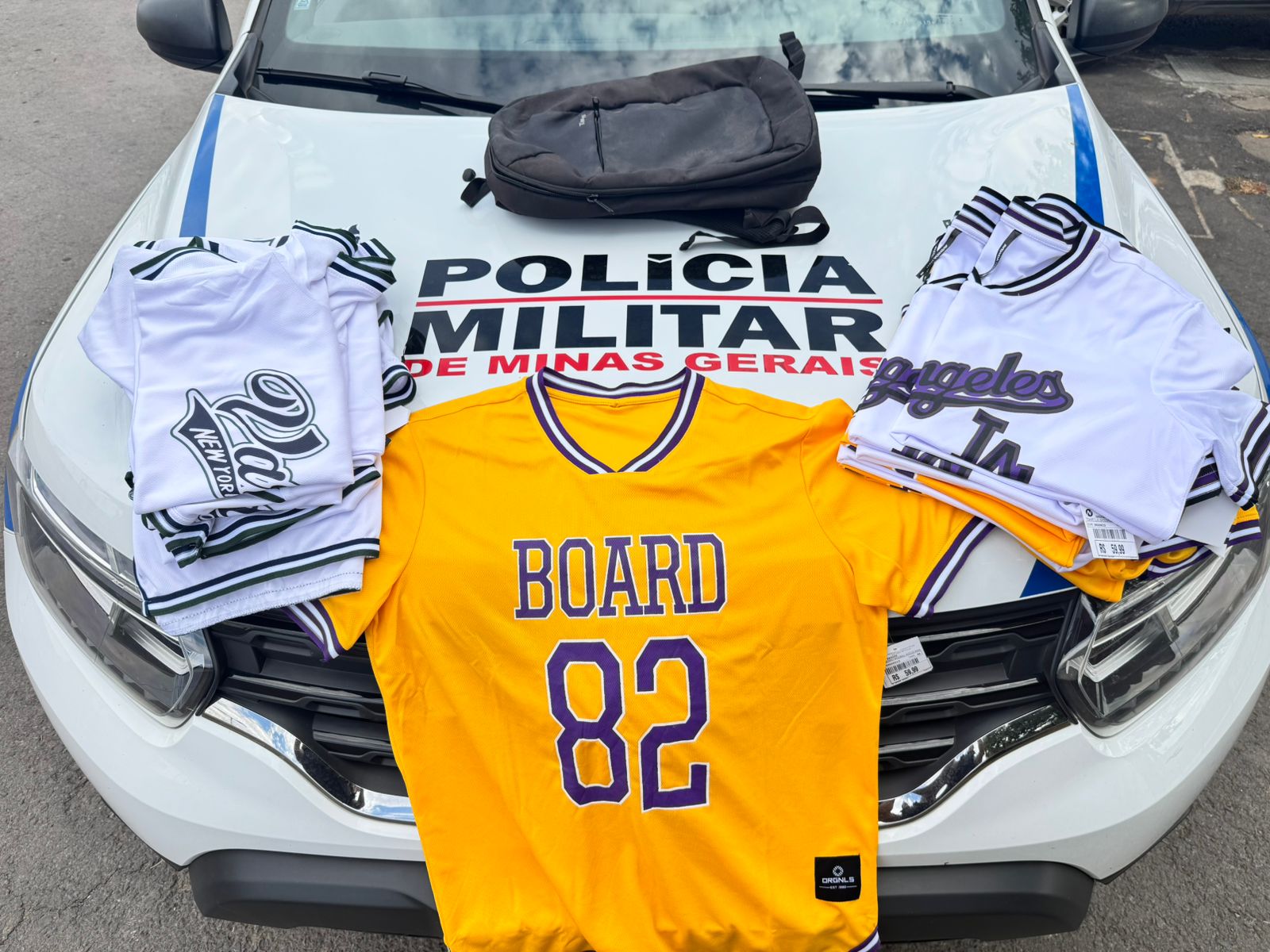 Com base nas informações e nas características repassadas pelas testemunhas, as guarnições iniciaram rastreamentos e localizaram o suspeito nas proximidades. Durante a abordagem, foram encontradas 14 camisetas com etiquetas da loja onde o furto havia ocorrido.