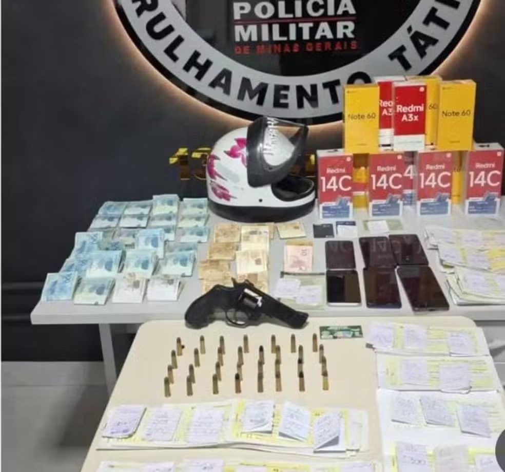 A Polícia Militar de Minas Gerais apreendeu um revólver, R$ 33 mil em dinheiro, três motocicletas, 31 munições e 18 celulares durante uma operação que resultou na prisão de dois suspeitos ligados a uma organização criminosa envolvida em empréstimos ilegais em Janaúba, no Norte de Minas.