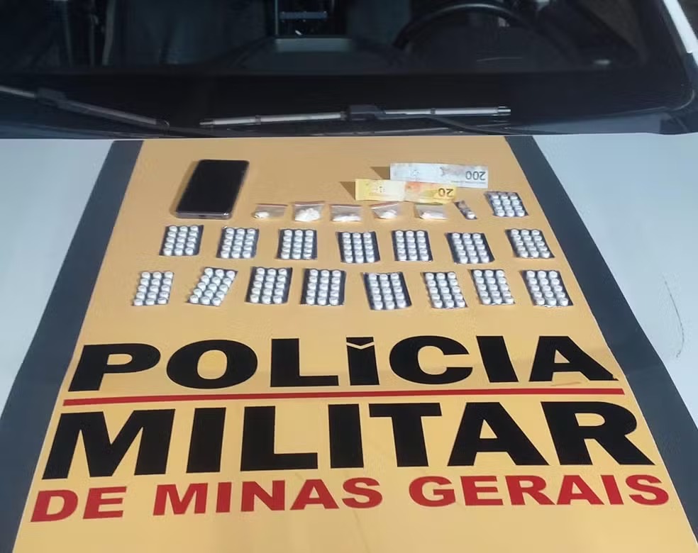 Diante da suspeita, os militares realizaram uma busca detalhada no carro. Na junção entre o encosto e o assento do banco do passageiro, foram localizadas diversas cartelas totalizando 238 comprimidos de rebite e três embalagens plásticas contendo cocaína. Outras duas porções da mesma droga foram encontradas na gaveta do painel.