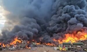 Fogo de grandes proporções atinge galpão de reciclagem e destrói carretas em Várzea da Palma