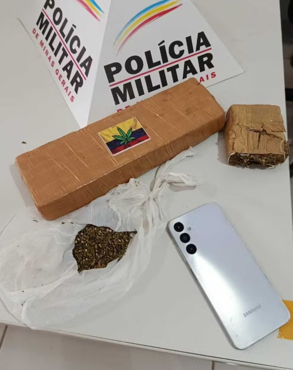 Durante a vistoria, os policiais encontraram, entre os pertences do passageiro, uma barra e meia de maconha, além de uma porção adicional da mesma droga. O rapaz confessou ser o dono do material e afirmou que pretendia vendê-lo na cidade.